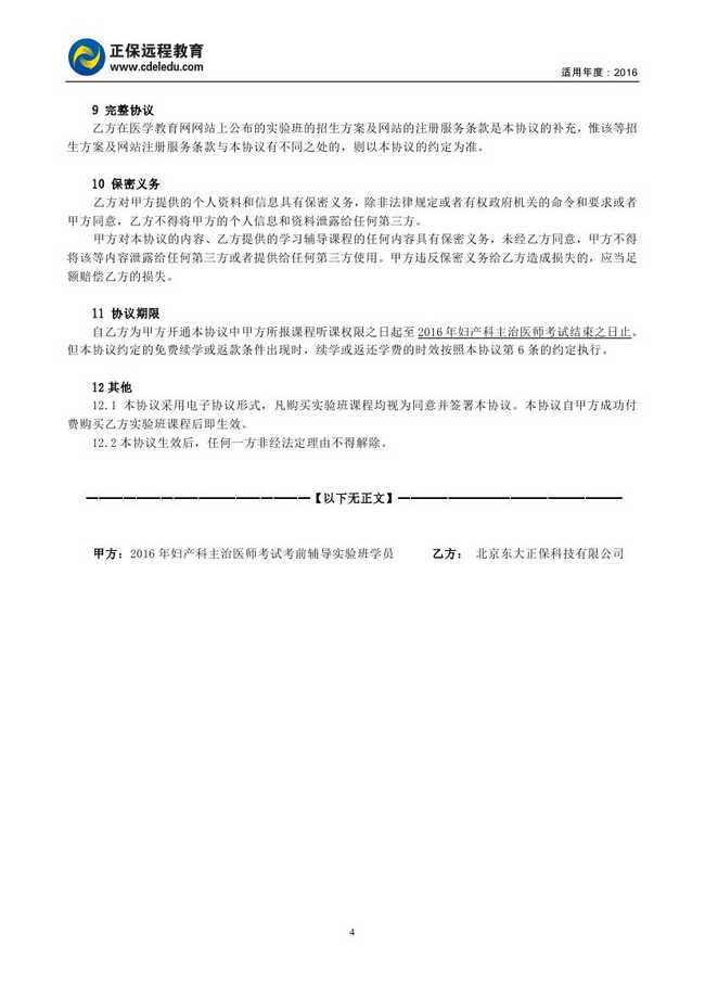 妇产科主治医师考试“实验班”协议书