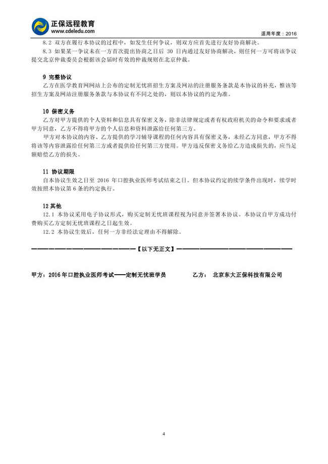 口腔执业医师“定制无忧班”协议书