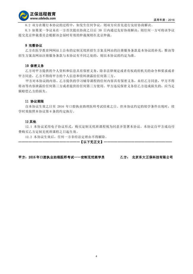 口腔执业助理医师“定制无忧班”协议书