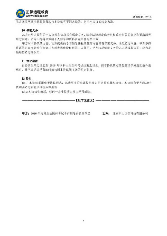 内科主治医师考试“实验班”协议书