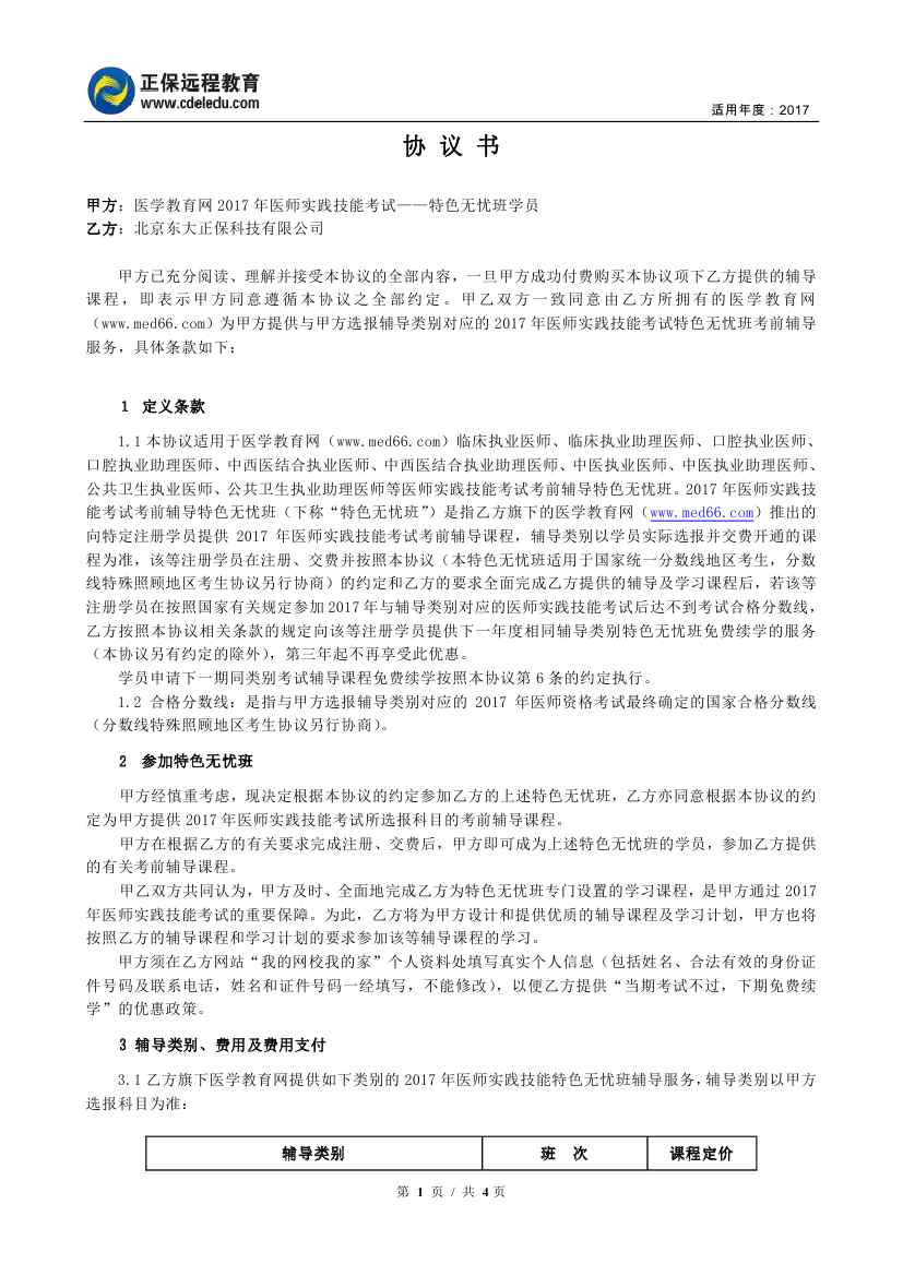 医师实践技能“特色无忧班”协议书
