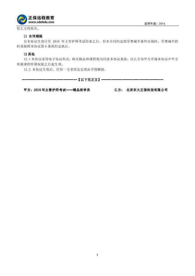 主管护师“精品班”协议书