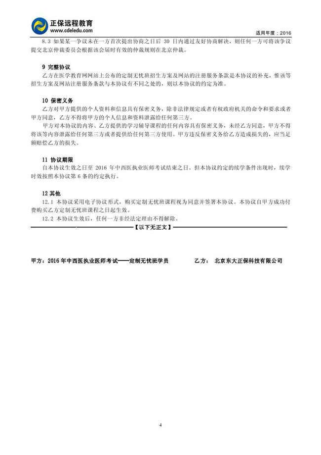 中西医结合执业医师“定制无忧班”协议书