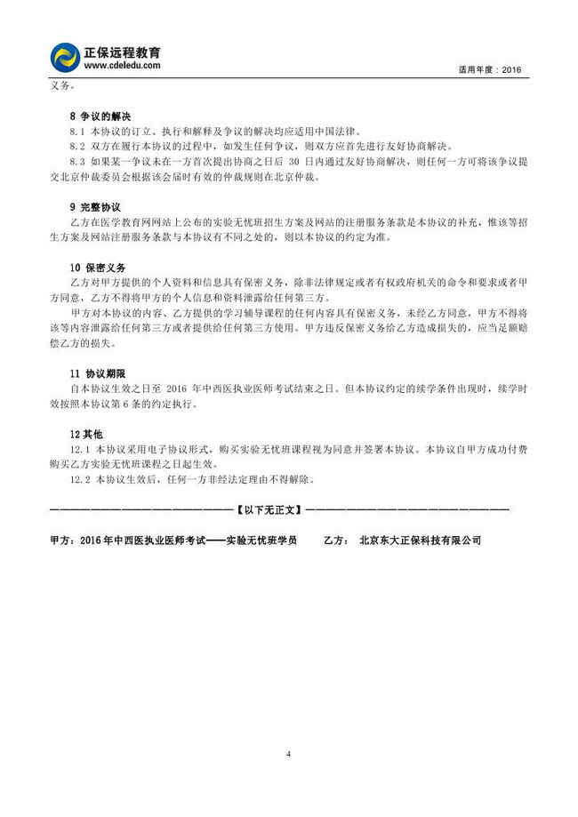 中西医结合执业医师“实验无忧班”协议书