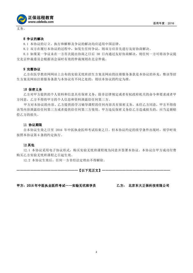 中医执业医师“实验无忧班”协议书