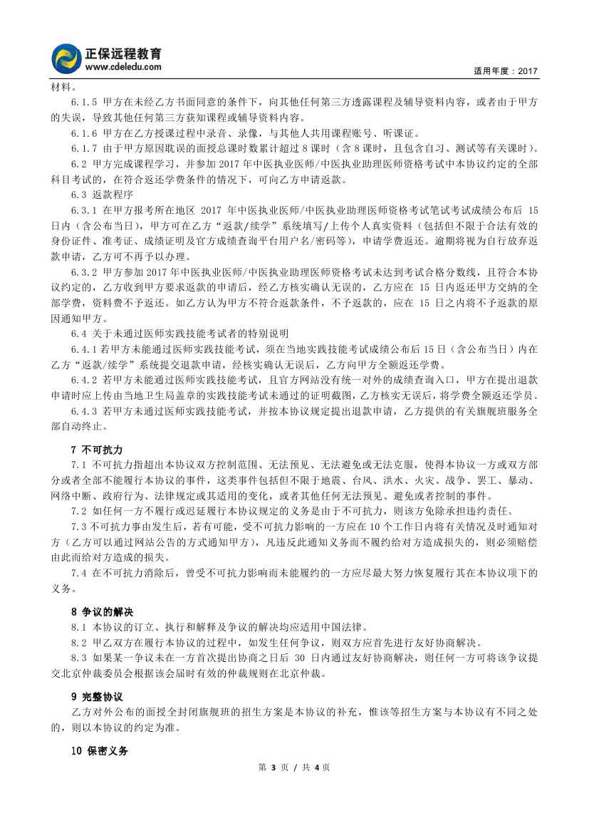中医医师“面授全封闭旗舰班”协议书