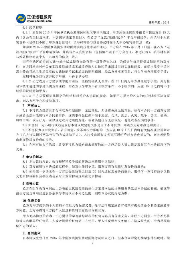 中医乡镇助理医师“无忧通关班”协议书