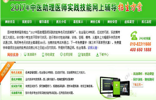 包含强化冲刺班、应试技巧班、实战模考班三大班次。专业专家授课,根据最新“医师实践技能”大纲要求,全面、细致、深入地讲解考试所涉及的各个知识点。真人操作演示,帮助考生快速、全面地理解和掌握考试重点、难点与考点。电脑在线观看课件,可不限时间、次数。支持课程、讲义等内容下载到计算机学习,也可下载到智能手机/平板电脑学习,直至当期笔试考试结束后1周关闭。