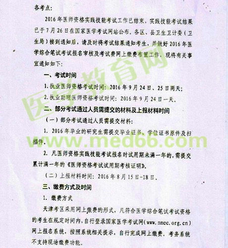医学教育网小编整理了2016年天津市宝坻区医师资格综合笔试有关事宜通知,具体如下: