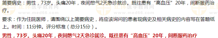 关于“2021年临床执业医师实践技能模拟试题——既往高血压头痛就诊的病史采集”相关内容,相信参加医师实践技能考试的考生都在关注,为方便大家了解,在此医学教育网小编为大家整理如下: