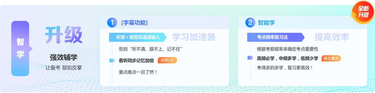 | 智能学 名师精讲阶段通过考频筛选视频课程及练习题,针对性复习。 |