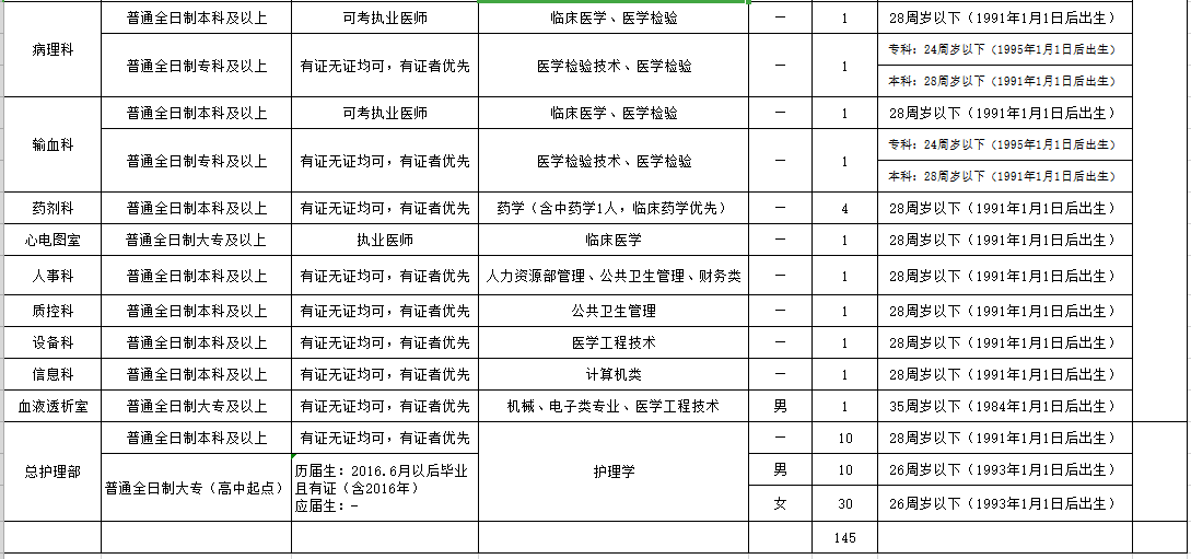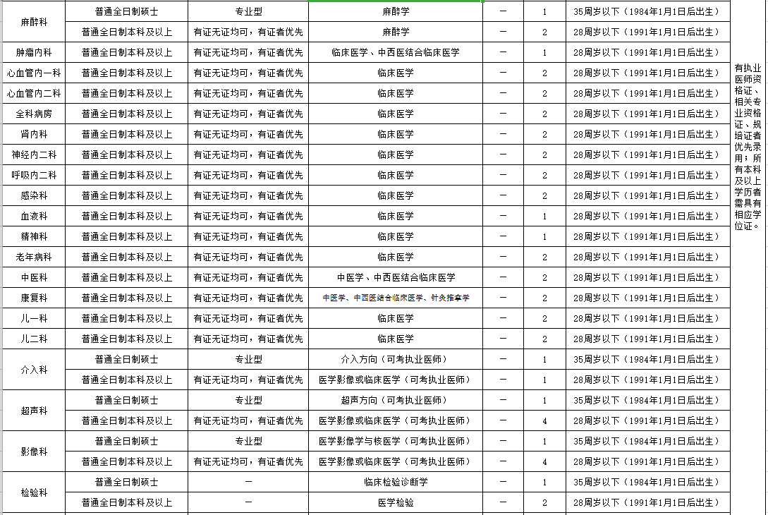 (一)普通全日制应、历届普通高校毕业生(具体要求详见招聘计划);(二)具有良好的品行和职业道德,身体健康,能适应岗位工作需要(报考护理岗位的人员,青霉素、酒精等过敏者不予录用)。