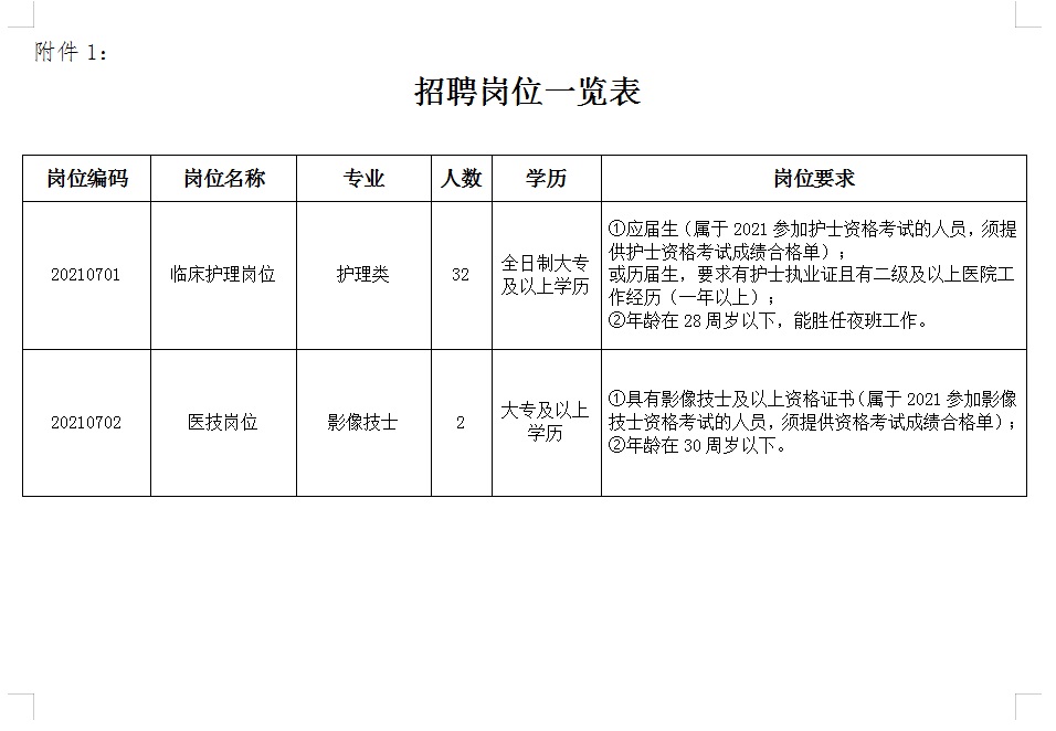 附件:1、招聘岗位一览表