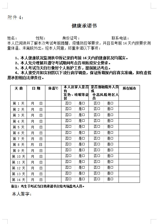 4、健康承诺书