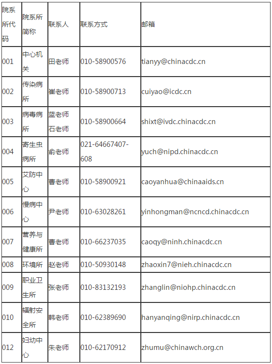 (一)关于研究生入学考试的相关信息如有更改,请随时浏览教育部有关网站和中国疾病预防控制中心网站和教育培训网,招生咨询信箱: