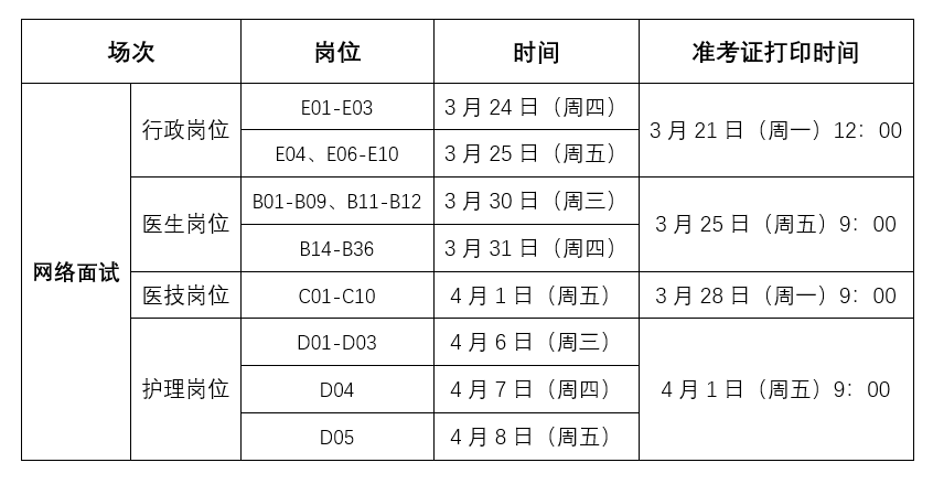考核面试场次及准考证打印时间: