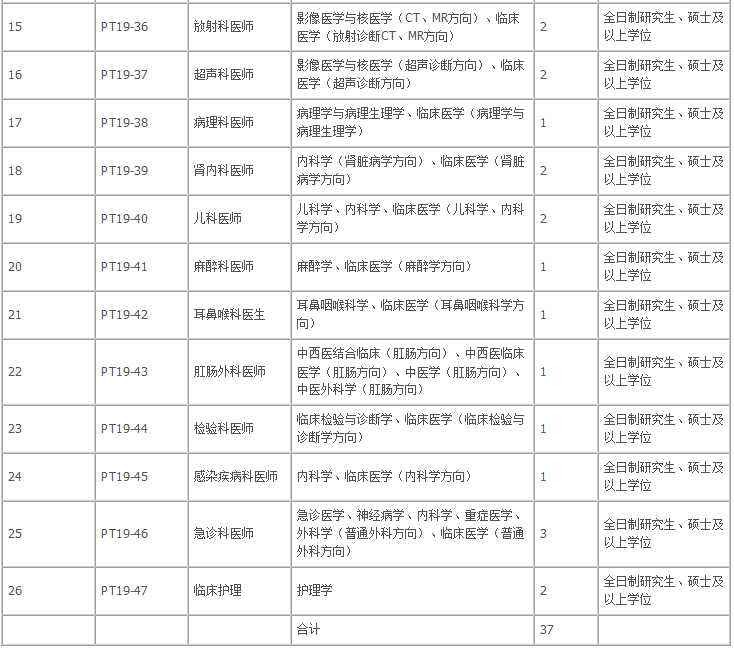 除19-67岗位,2017、2018届毕业生报考者须具有三级及以上医院工作经历或医师规范化培训经历,并具有执业资格或专业技术任职资格。