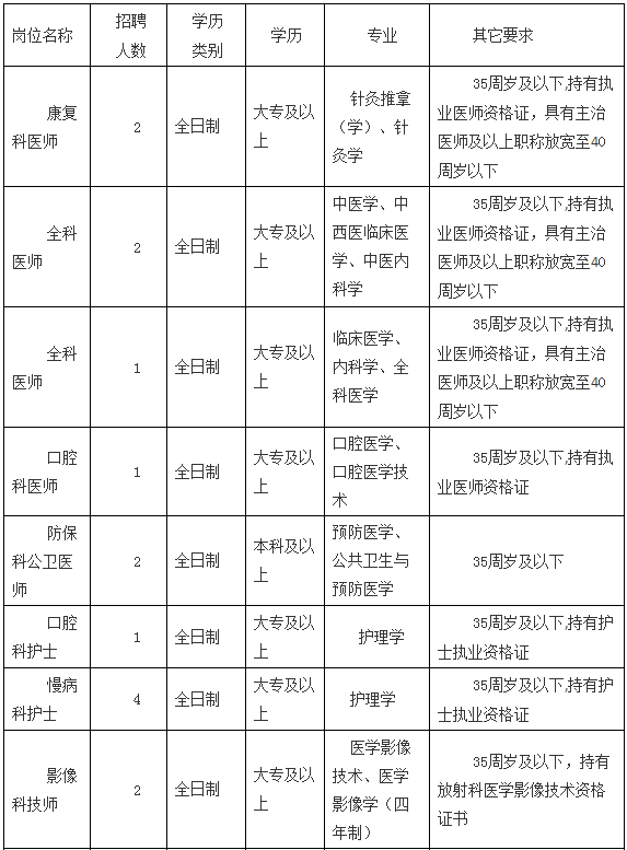 4、具有各医院、社区卫生服务中心、社区站、卫生院工作经验者优先。