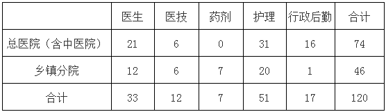 为加强我院人才队伍建设,根据县委、县政府办公室印发《宁化县机关事业单位编外聘用、县属国有(集体)企业及社区招聘工作人员办法》(宁委办〔2018〕1号)文件精神,经总医院党委会研究同意,报县编委会核准,决定公开招聘编外合同制专业技术人员120名。现将有关事项通告如下: