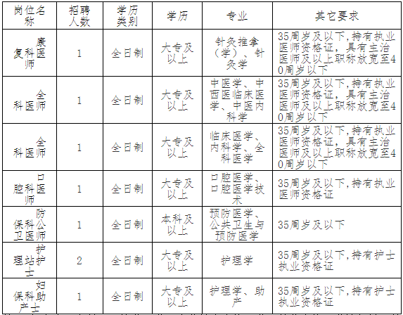 4、具有各医院、社区卫生服务中心、社区站、卫生院工作经验者优先。