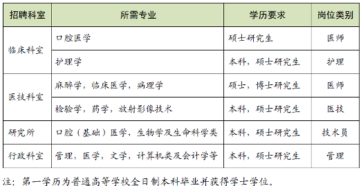 以上就是小编为大家整理的广东中山大学附属口腔医院招聘编外医务工作人员,请大家多多关注医学教育网,我们会随时更新更多更好的关于医学知识、医疗招聘及考试辅导等相关内容,敬请期待!
