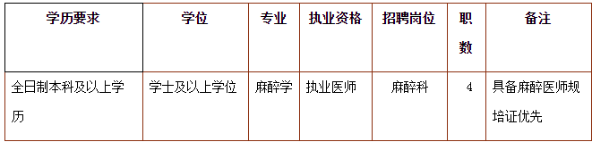 以上就是小编为大家整理的贵州省仁怀市人民医院面向社会公开招聘麻醉科医师4名,请大家多多关注医学教育网,我们会随时更新更多更好的关于医学知识、医疗招聘及考试辅导等相关内容,敬请期待!