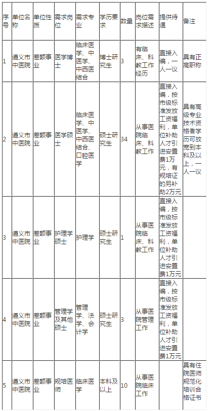 以上就是小编为大家整理的贵州省遵义市中医院(遵义市第三人民医院)高校巡回招聘医学人才51人,请大家多多关注医学教育网,我们会随时更新更多更好的关于医学知识、医疗招聘及考试辅导等相关内容,敬请期待!