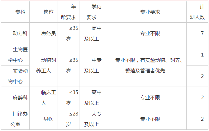 我院因工作需要,现公开招聘劳务派遣制员工若干,具体岗位及要求如下: