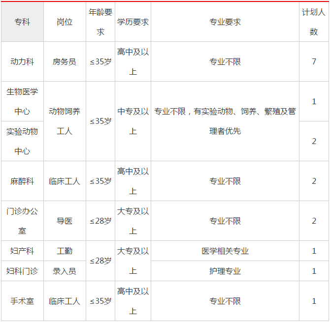 我院因工作需要,现公开招聘劳务派遣制员工若干,具体岗位及要求如下: