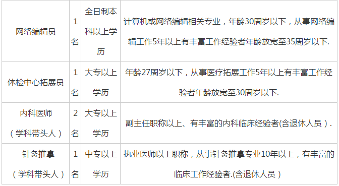 根据医院业务发展需要,现面向社会公开招聘如下聘用制工作人员。