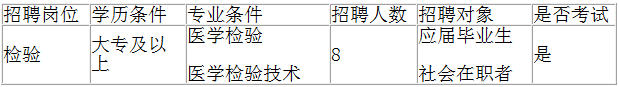 因工作需要,常熟市医学检验所现向社会公开招聘编外劳动合同制医学检验人员8名,具体岗位及要求如下。