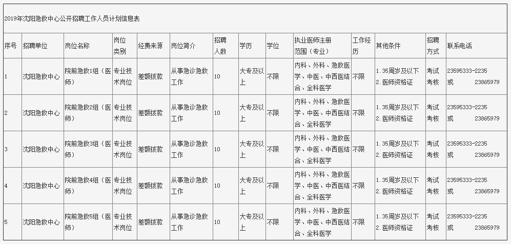 以上就是小编为大家整理的沈阳急救中心2019年公开招聘50名工作人员公告,还请大家多多关注医学教育网,我们会随时更新更多更好的有关医学知识、医疗招聘及考试辅导等相关信息。敬请期待!