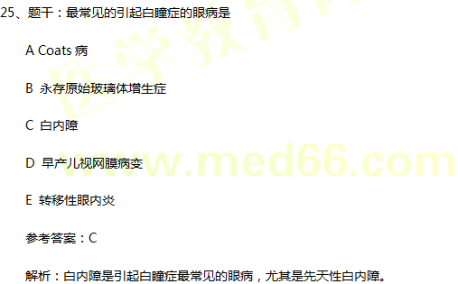 为了帮助大家更好地复习备考医疗招聘考试,今天医学教育网小编专门为大家分享文章:眼科学单选题之三,希望可以有所帮助!