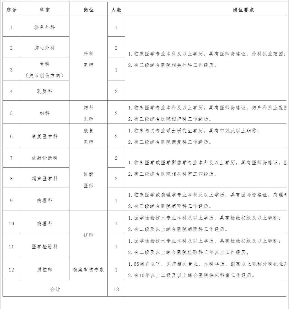 近年来,随着就诊患者的不断攀升,为进一步提升人才队伍建设水平,打造一批医品、素质、技术过硬的高医人,更好的保障宝鸡及周边地区患者的就医质量,医院现面向高校公开招聘以下岗位: