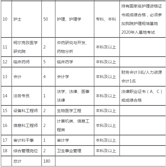面向内地高校招聘具有国家承认的、全日制普通高校本科及以上学历的应往届毕业生(护理岗位最低学历要求大专)。