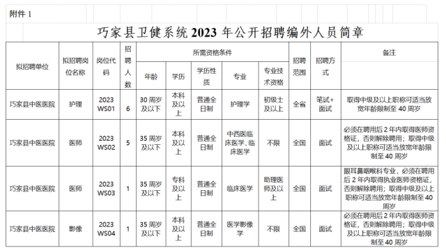 2.报名时间和地点:详见《巧家县卫健系统2023年公开招聘编外人员报名方式、时间及地点》(附件2)。