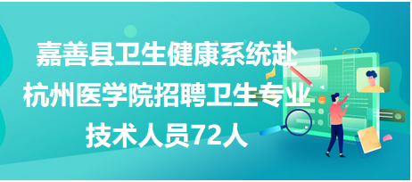 医疗招聘进行时!各地纷纷发布医疗招聘公告,广纳贤才,医学教育网为了更好的服务有就业意愿的相关医疗人员,将会为大家持续整理并更新各地医疗招聘的相关公告,大家可持续关注!以下是公告“嘉善县卫生健康系统赴杭州医学院招聘卫生专业技术人员72人”的相关内容: