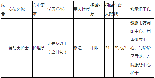 因工作需要,本单位拟公开招聘工作人员34名,派遣至浙江大学医学院附属第一医院护理部工作。