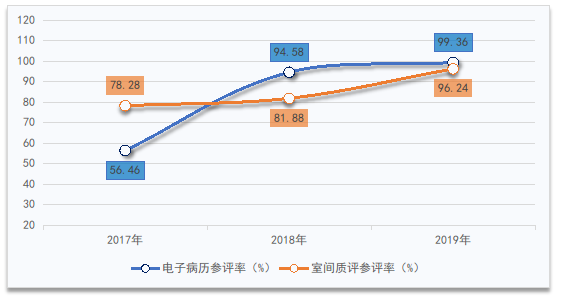 图1 三级公立医院电子病历和室间质评参评率