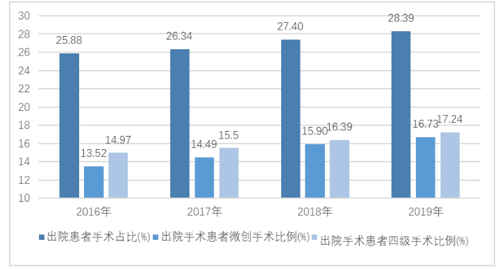 图4 2016-2019年三级公立医院出院患者手术开展情况