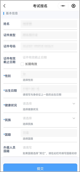 注意事项:“证件有效截止日期”如早于考试日期,系统会有提示但不影响报名,请及时更换有效证件,以免影响参加考试。