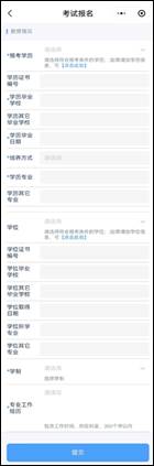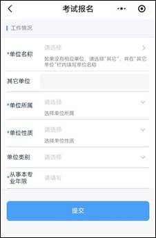 进入填写报考信息页面,系统将默认显示上一年度的报名信息。考生须逐页核对考点信息、基本信息、联系方式、报考信息、教育情况、工作情况,可根据本年度报名的实际情况修改,确认无误后点击提交。