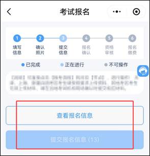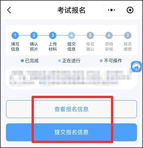 6.确认照片后将跳转至【提交信息】页面,考生可点击“查看报名信息”进行信息核查。确认无误后,回到报考流程中的【提交信息】节点,点击“提交报名信息”。