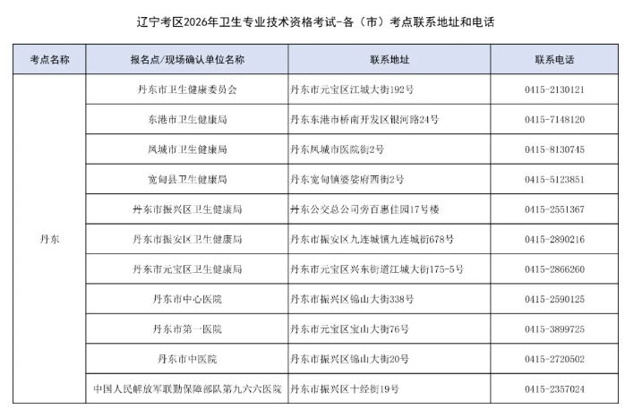 附件:2026年卫生专业技术资格考试丹东考点联系方式