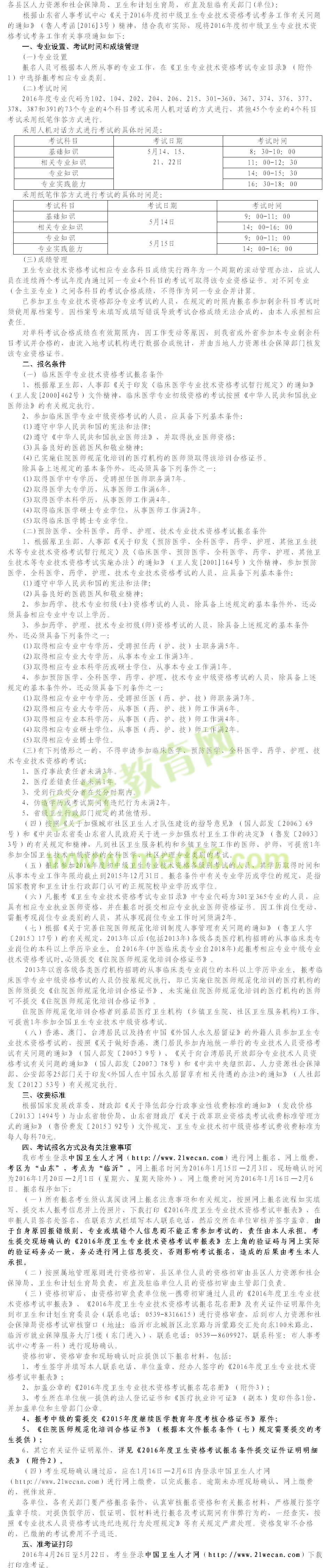 山东临沂市2016年卫生资格考试报名时间及地点通知(点击查看大图):
