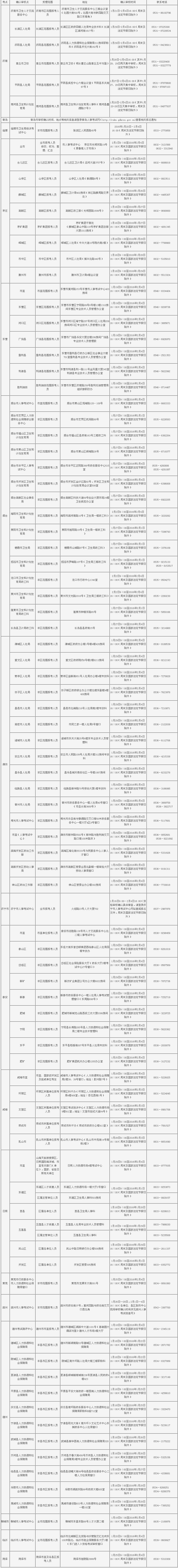 山东省2016年度卫生专业技术资格考试确认审核点信息汇总表(点击查看大图):
