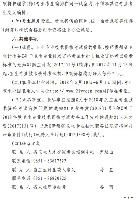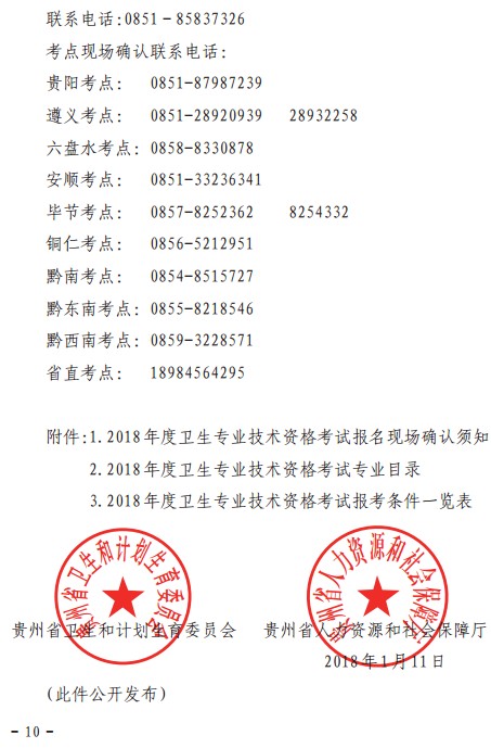 安顺市2018年卫生专业技术资格考试各报名点现场确认时间安排