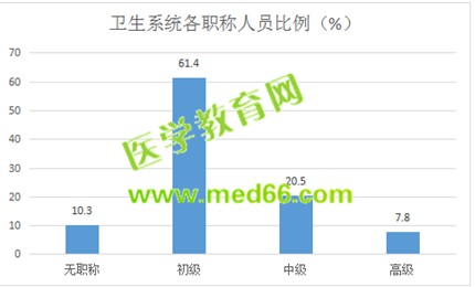 只有通过卫生资格考试才可以晋职称。从下图可以看出,大多数人卫生人员都拥有职称,但是中级职称相对来说比较少。这说明,参加卫生资格考试是大势所趋,通过考试也是有一定难度的。