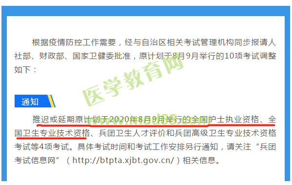 北京、新疆及兵团的考生注意啦!北京2020年卫生资格考试并入下一年开展,新疆及北京的考试延期啦。为了帮助大家了解,医学教育网为大家整理如下: