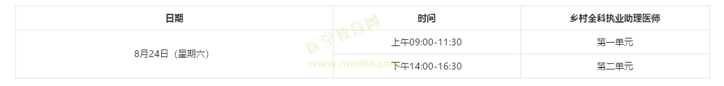 二、2019年乡村全科执业助理医师综合笔试考试时间为8月24日: